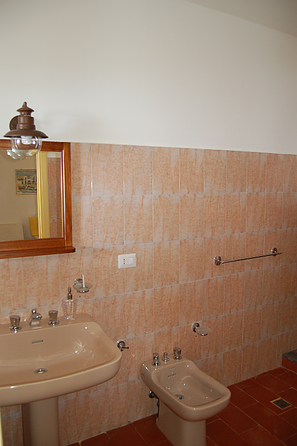 The master bedroom has air conditioning and offers a spectacular view from the window of Salina, Alicudi and Filicudi. The large, well-kept bathroom has a bath and shower.