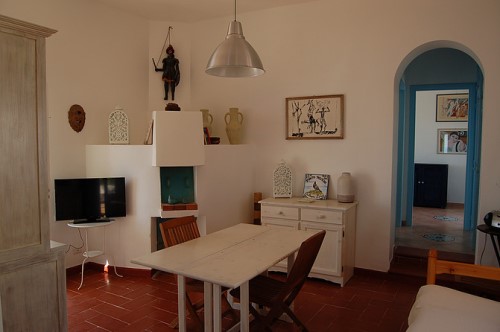 In salotto è presente: l’antico forno a legna, il divano ( letto matrimoniale), il tavolo e la tv Lcd.